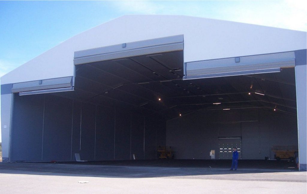 The application of aircraft hangar doors requires relatively fast door operating speeds. Standard operating speed is 20cm/sec opening and closing speed. This can be increased up to 40cm/sec.